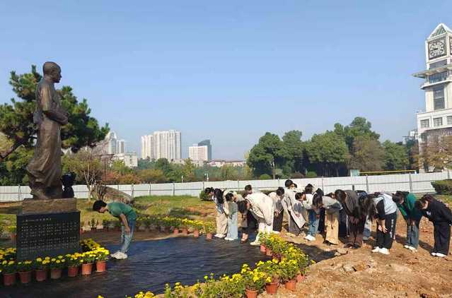 青松伴贤者,菊香寄追思。11月15日,在我校首任校长、著名历史学家范文澜先生诞辰之际,后勤保障部工作人员与金融学院学生代表齐聚范先生雕像前,共同开展“铭记校史,赓续薪火”纪念活动。活动将劳动实践与校史教育相融合,引导师生在躬身实践中感悟历史、传承精神。
