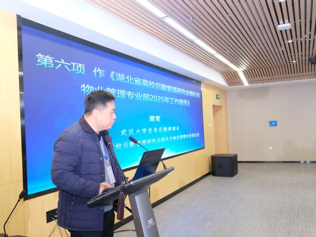 绿专部主任、武汉大学总务后勤部部长周军作2025年年度工作总结暨2026年工作计划报告,系统梳理了过去一年在组织架构优化、智能化转型、服务模式创新、标准化建设与育人实践融合、行业协同等方面的丰硕成果,清晰擘画了2026年强化战略引领、推动数智赋能、铸造标准体系、厚植育人根基、深化产教融合的五大发展路径。