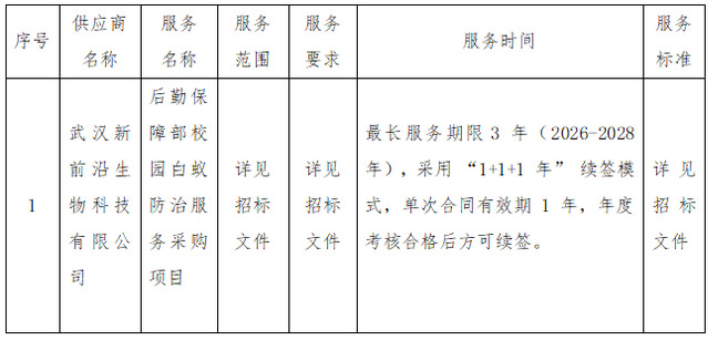 二、项目名称:后勤保障部校园白蚁防治服务采购项目